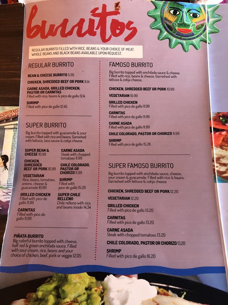 Rilled with rice, beans & your choice of meat. Whole beans available upon request. Grilled meats (al pastor, chile colorado, chorizo, carne asada, carnitas, grilled chicken, shrimp and fish) also include pico de gallo